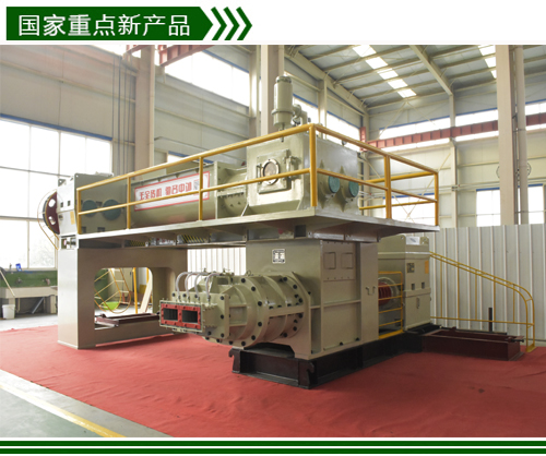 国内高效节能SJKY90F-4.0双级双螺旋真空制砖机,该机具有四大特点:一、主机结构只用不坏;二、减速机、轴承只管使用不用担心;三、耐磨件使用少更换;四、该机与同类型砖机产量相比较,1小时多生产三分之一。生产能力:28000-35000(标块/时) 装机容量:132KW+280KW。
